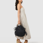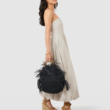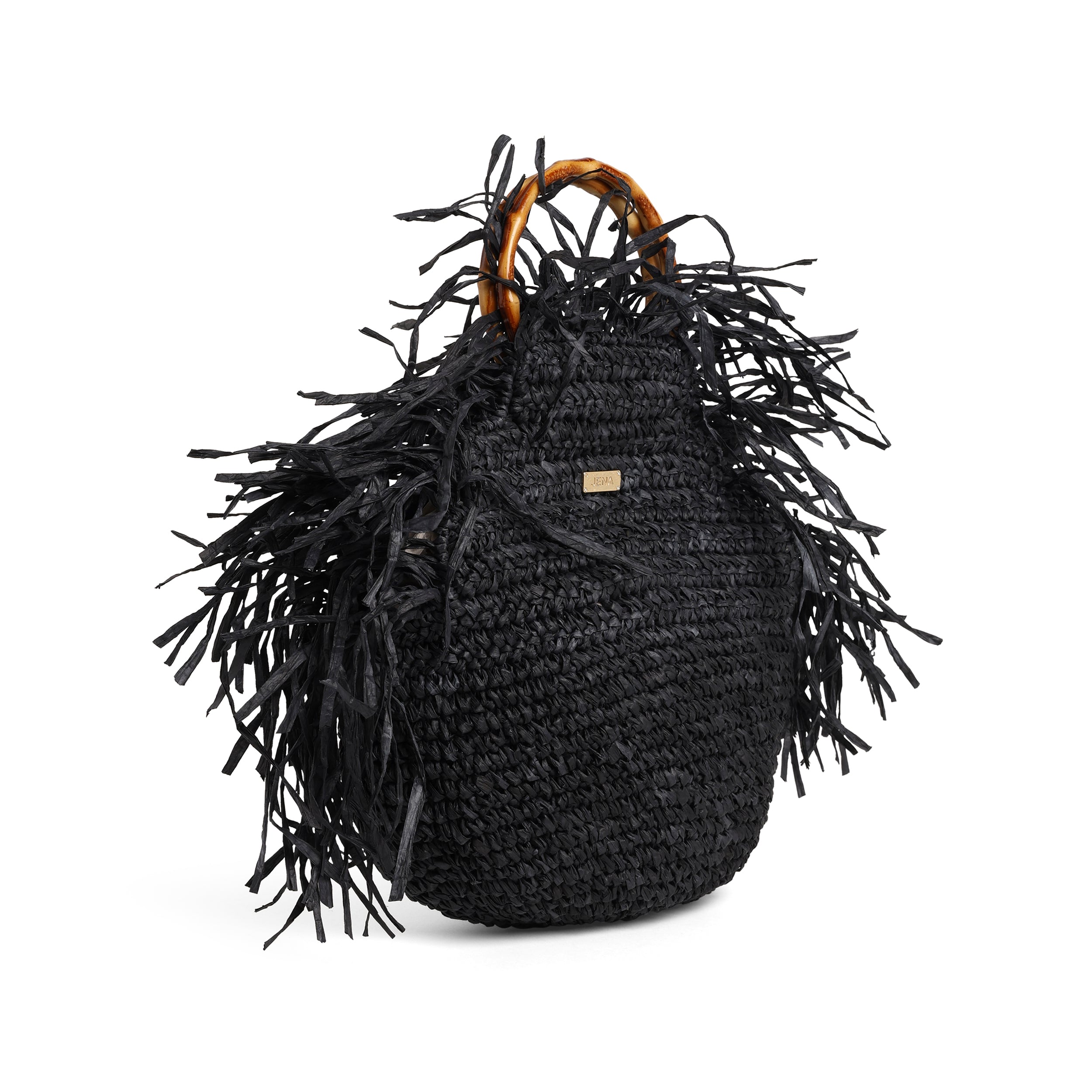 JENA Black Raffia Bag with Bamboo handle