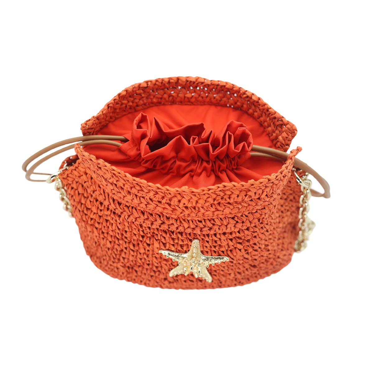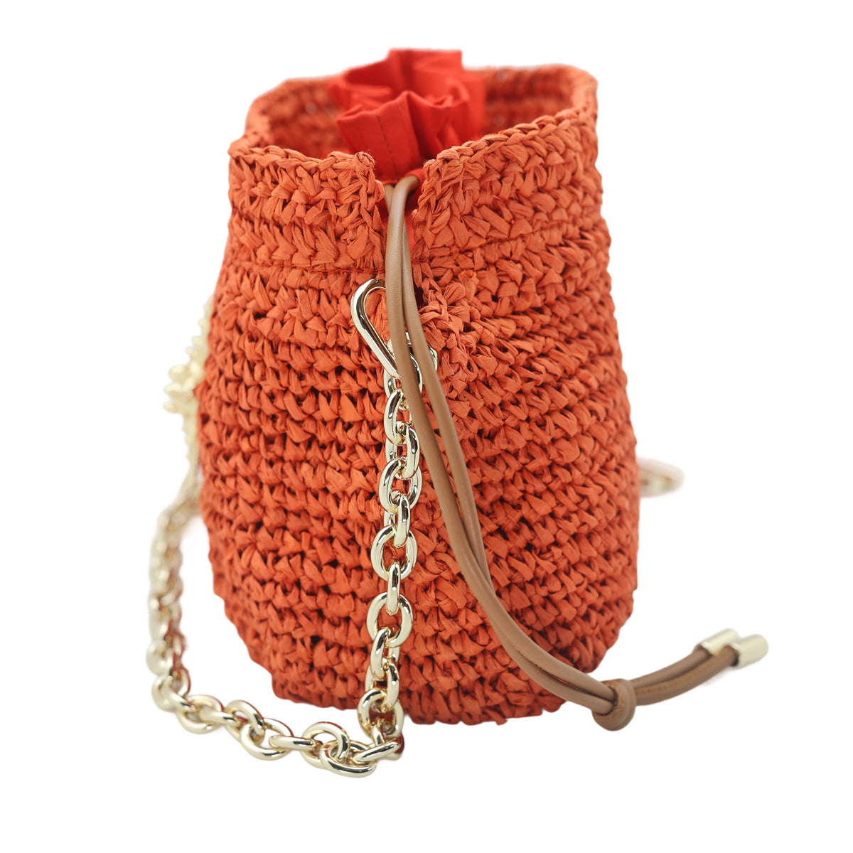 The interesting weave and metal embelishment adds an element of fun to the bag.